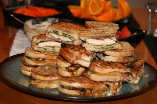 Since last Saturday’s chicken sandwiches were a success, we thought we would try something new tonight with company: Grill chicken panini with smoked gouda and arugula. Preparing the food was amazingly simple, but the grilling did require a few techniques beyond slamming some meat on and flipping it over high heat with barbecue sauce until it’s burned.