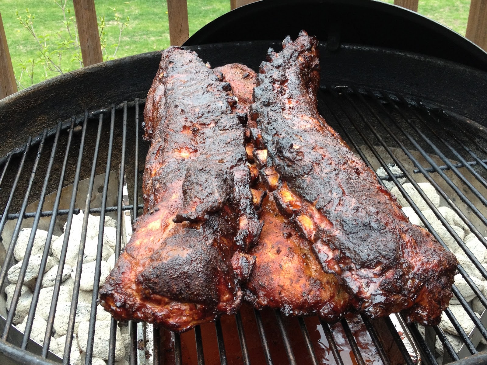 Saturday: Hickory Smoked Baby Back Ribs. These babies were seasoned with kosher salt, chipotle pepper powder, cumin, garlic powder and black pepper (plus some others I can’t remember right now), then sat for a little over an hour. I prepared a three-zone fire for indirect heat and tried to keep the internal temperature between 300 and 350 degrees. They were on the grill about 3 hours, basking in hickory smoke for the first two. They were very good, maybe the best I’ve grilled so far, but I think I still have a long way to go to make perfect ribs.